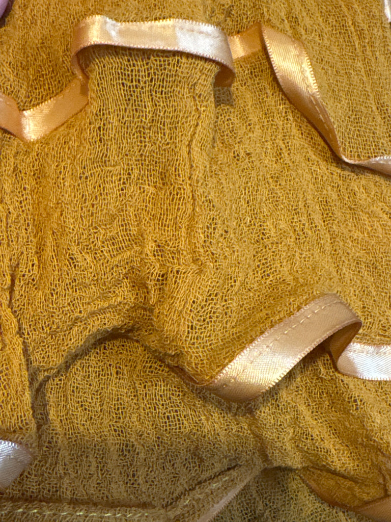 For the hopeless romantics Light gauze like fabric Thin + sheer Satin like ribbon trim Crochet lace collar detail One size fits most (S-2X) 100% cotton Made in Mexico *This is a handmade product therefore some irregularities are normal from...